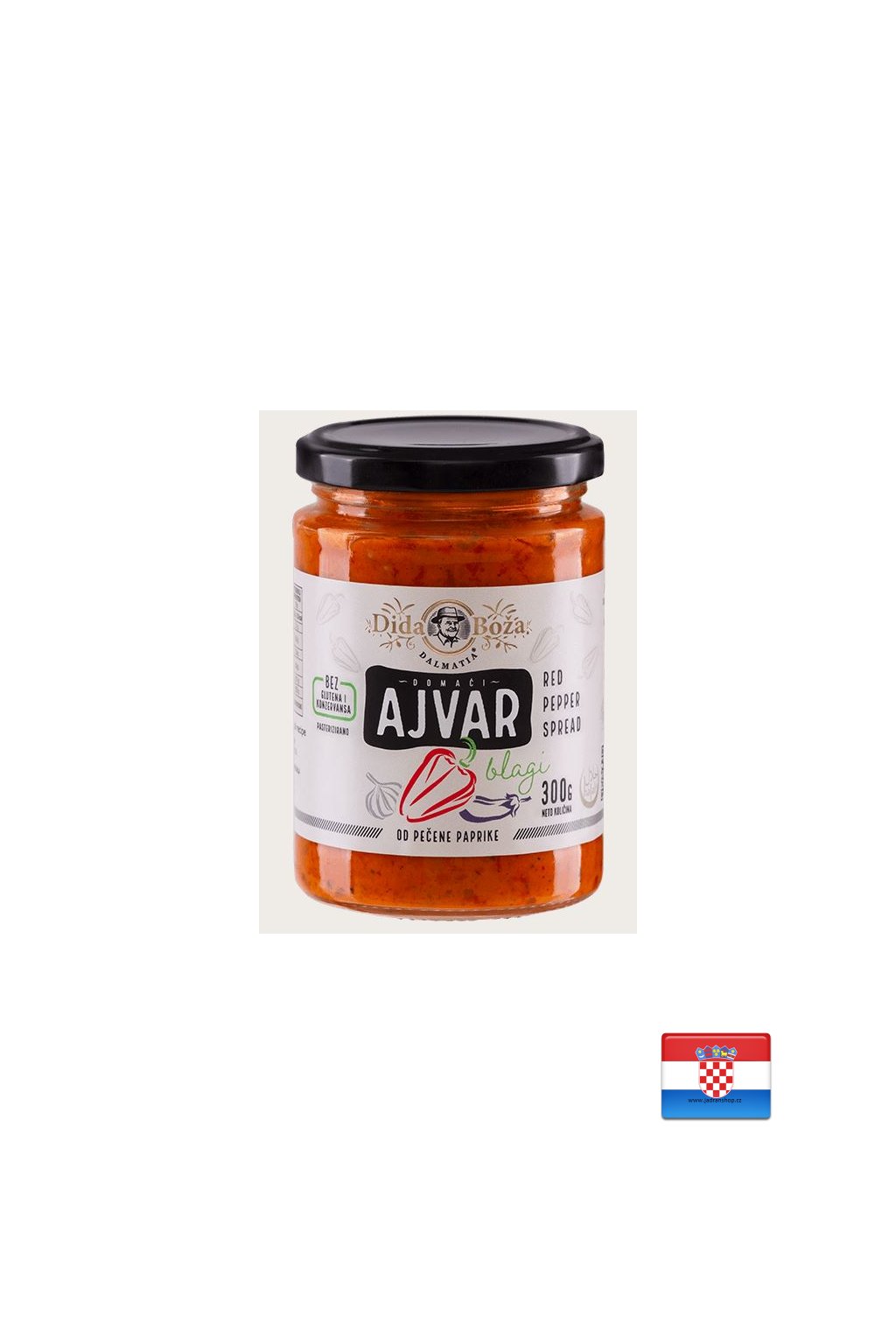 Pokud jste opravdoví gurmáni a milujete delikatesy, pak je pro vás tento jemný ajvar Dida Boža tou správnou volbou. Vybrané a pečlivě vybrané ingredience, tradiční makedonská receptura a hostina chutí, kterou si nenecháte ujít. Domácí jemný ajvar se skládá až z 80 % z pražené papriky, a proto dodá každému pokrmu osobitost. Ajvar neobsahuje lepek ani konzervační látky.
