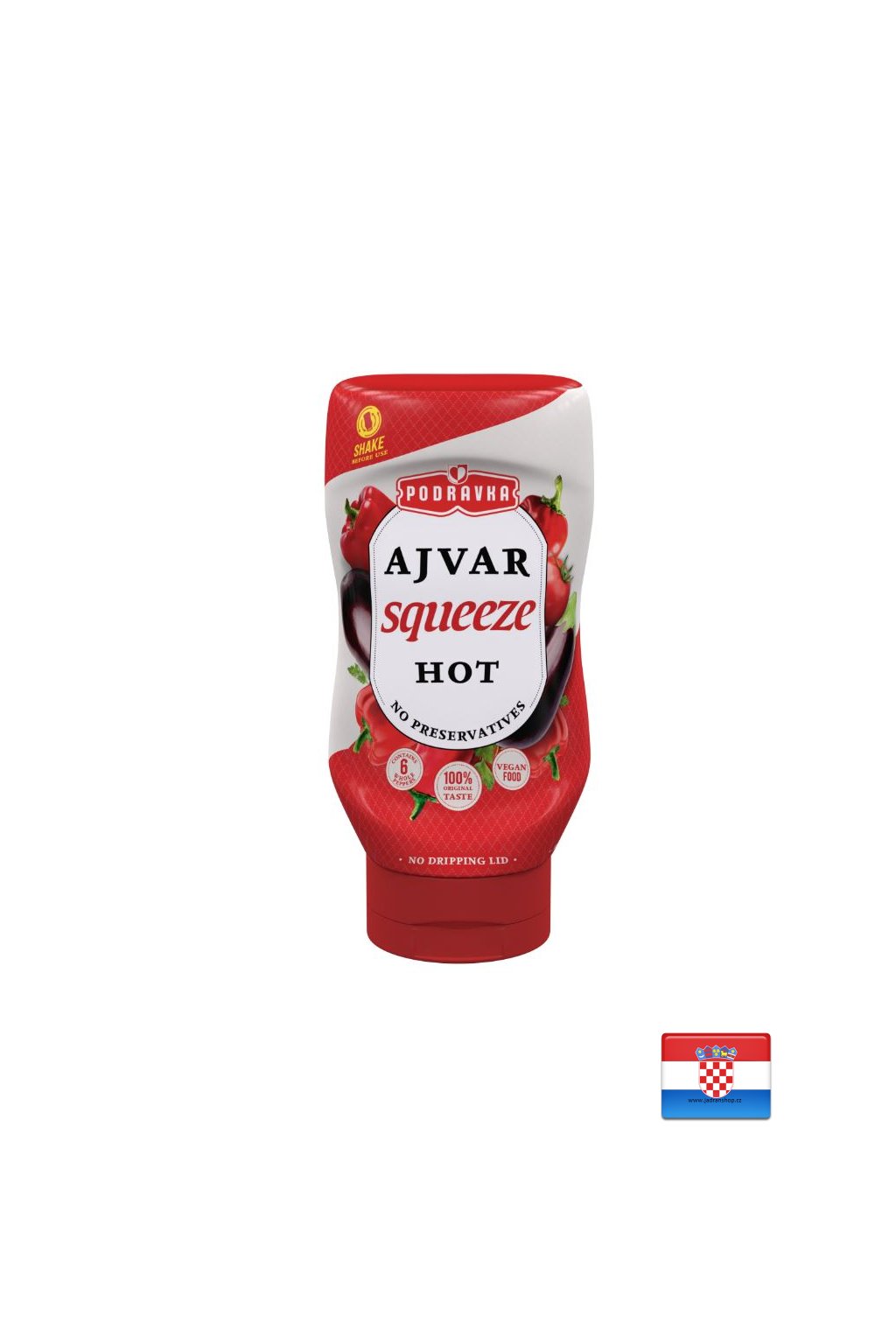Tradiční Podravka Ajvar ostrý zabalený v praktické láhvi se stejným 100% zeleninovým složením a nezaměnitelnou chutí, kterou znáte. Bez konzervačních látek, umělých aromat a barviv, neobsahuje lepek. Pro své jedinečné složení je oblíbený také u vegetariánů a veganů.