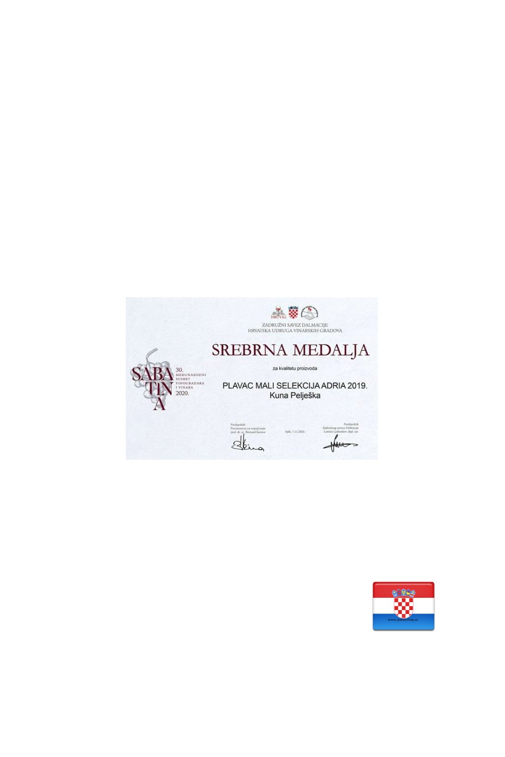 Plavac mali Prémiové suché víno s KZP Vinogorje Pelješac. Víno střední a jižní Dalmácie z Chorvatska