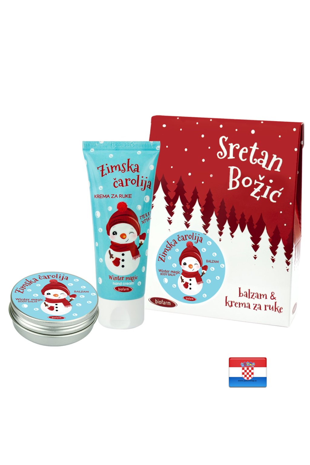 Pečující balzám na pokožku těla a obličeje a krém na ruce s vůní zimy