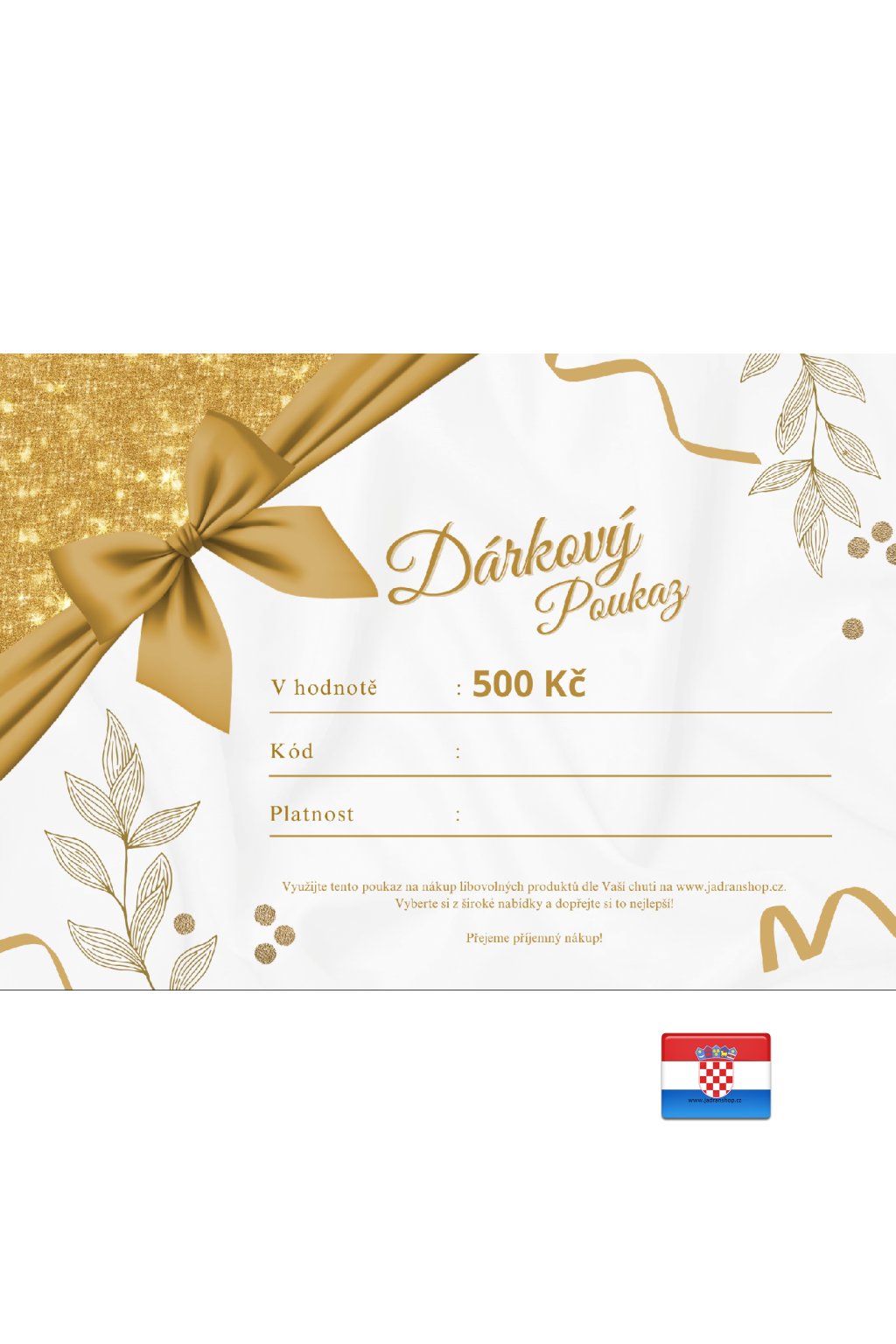 Hledáte ideální dárek pro blízké, přátele nebo kolegy? Darujte jim dárkový poukaz na nákup v e-shopu JADRANSHOP.cz v libovolné hodnotě. Nechte je vybrat si přesně to, co je potěší!