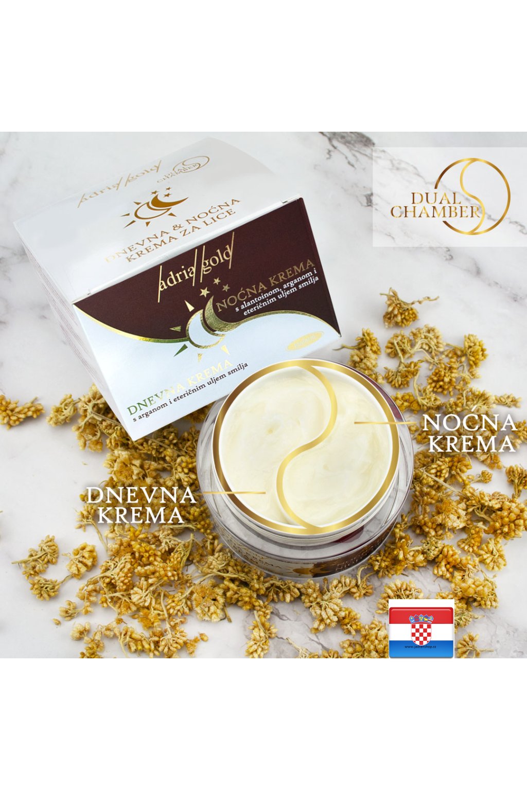 Kombinace denního a nočního krému v jednom balení je praktický způsob, jak udržet pleť hydratovanou po celý den. Oba krémy obsahují mnoho chemických sloučenin, které přispívají k mladistvému vzhledu pleti a hloubkově ji vyživují.