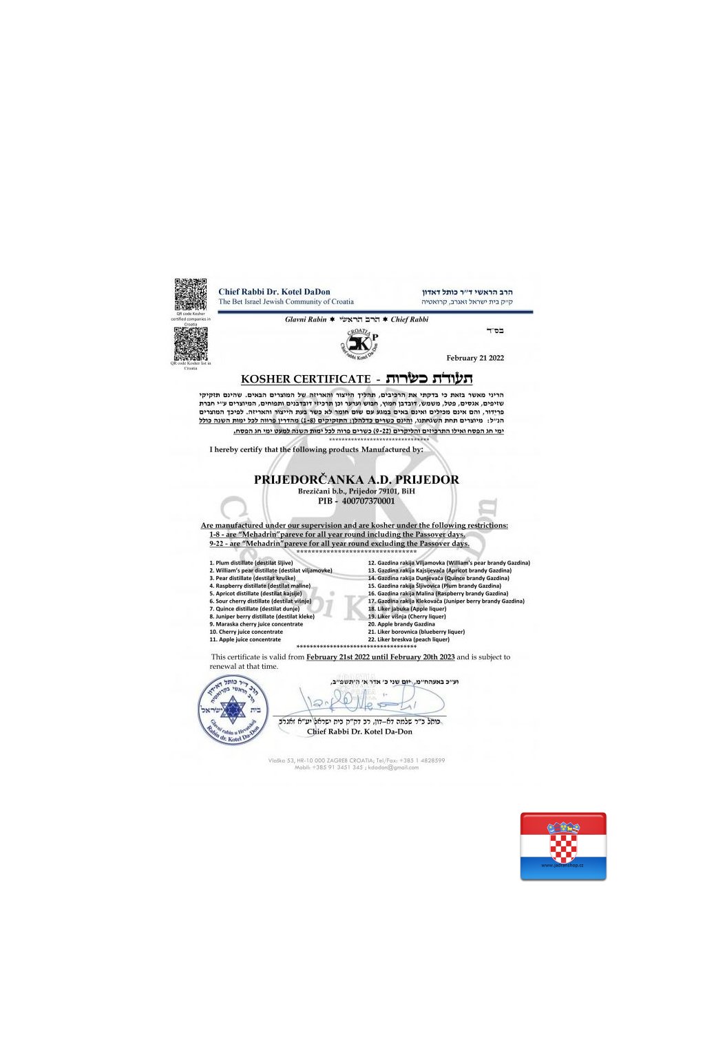 Jalovcový destilát je rakije typické, jemně aromatické vůně, získané zvláštním způsobem přípravy čerstvých švestek a jalovčinek, jejich spontání fermentací a zachování charakteristik jalovčinek.