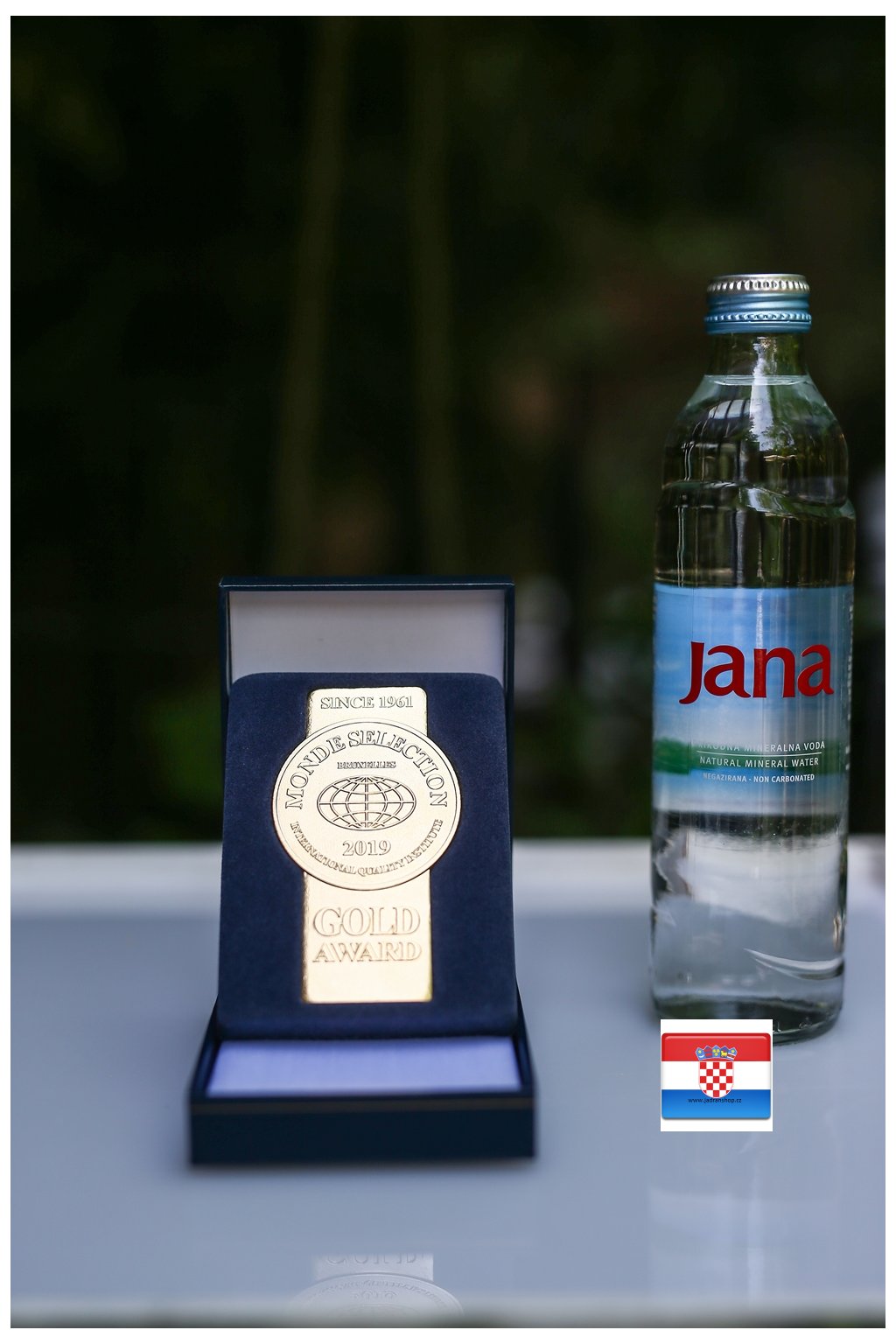 Jana přírodní neperlivá minerální voda získala zlatou medaili na mezinárodní soutěži Monde Selection v 6/2019. Byla vybrána z 3200 výrobků z 90 zemí, 70 odborníky a specialisty z oboru. Lékaři, odborníci na zdravou výživu, profesoři a také kuchaři z restaurací které získali Michelinskou hvězdu. Vyniká svojí jemností a čistou chutí přírody z hloubky přes 800 m.