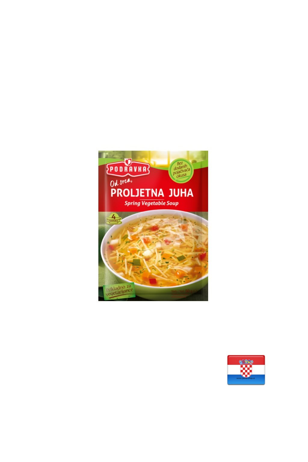 Složení: těstoviny semolinové 50% (semolina z pšenice Triticum durum), jedlá sůl, sušená zelenina 10,6% (mrkev, celer, cibule, brambory, červená paprika, pórek), palmový tuk, cukr, výtažek z kvasnic, kukuřičný škrob, směs koření, barvivo (karamel), petržel.