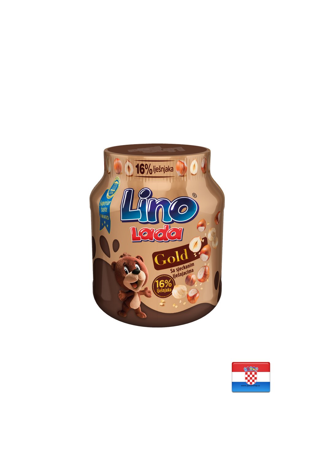 Až 16% lískových oříšků v nové příchuti Lino Lada poskytuje všem gurmánům bezkonkurenční nový zážitek. Již známou neodolatelnou chuť a texturu pomazánky Lino Lada dále doplňují nasekané a pražené lískové ořechy. Do palačinky nebo na zmrzlinu nebo "jen" na lžíci. Lino Lada Gold pro všechny věkové kategorie - dospělé i děti. Přejeme vám vřelé přivítání nového člena rodiny Lino Lada!