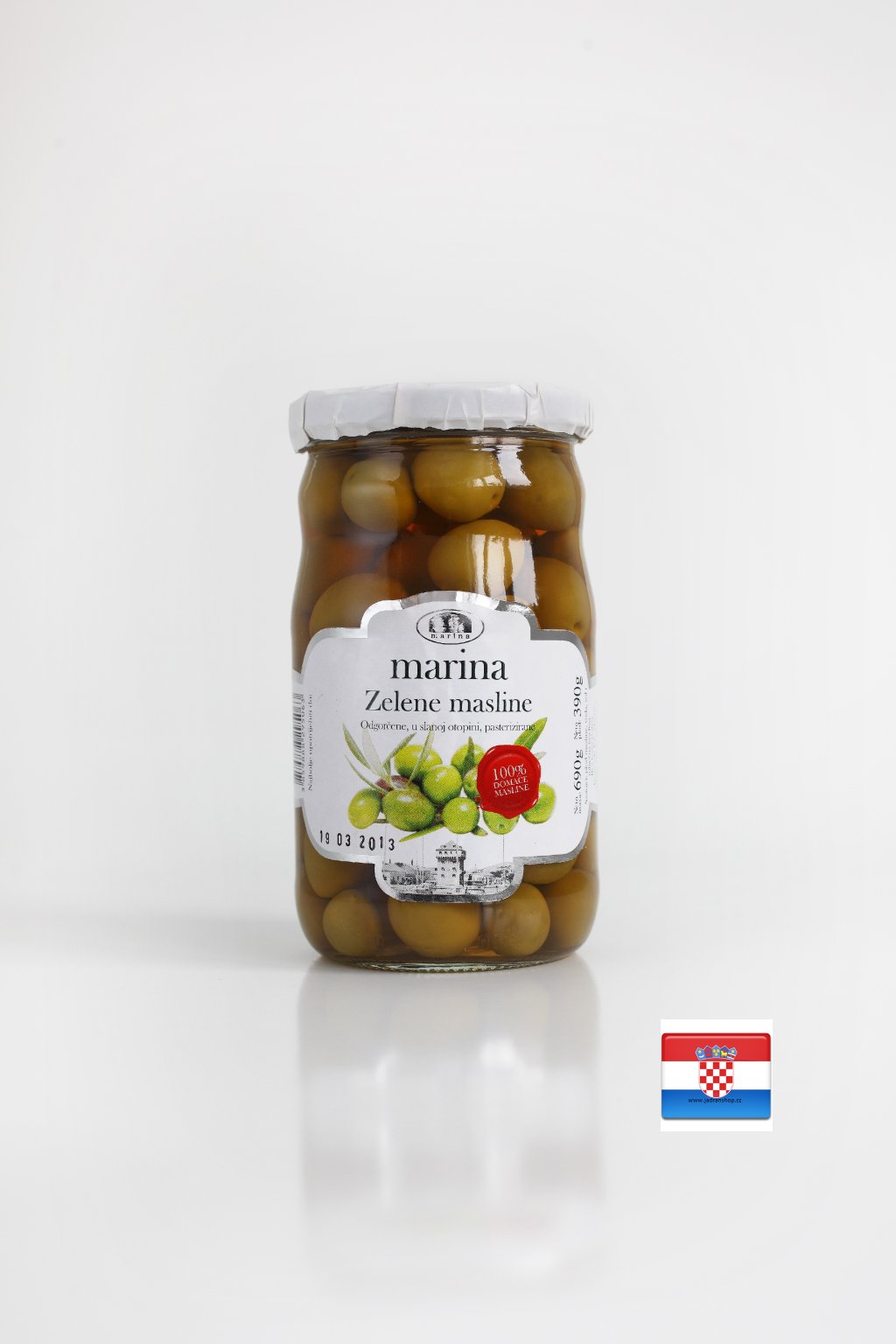Vynikající olivy ze střední Dalmácie, od malých pěstitelů, ručně sbírané, bez postřiků a umělých hnojiv, zpracované v malém zemědělském družstvu Marina,3 km od krásného města Trogir.