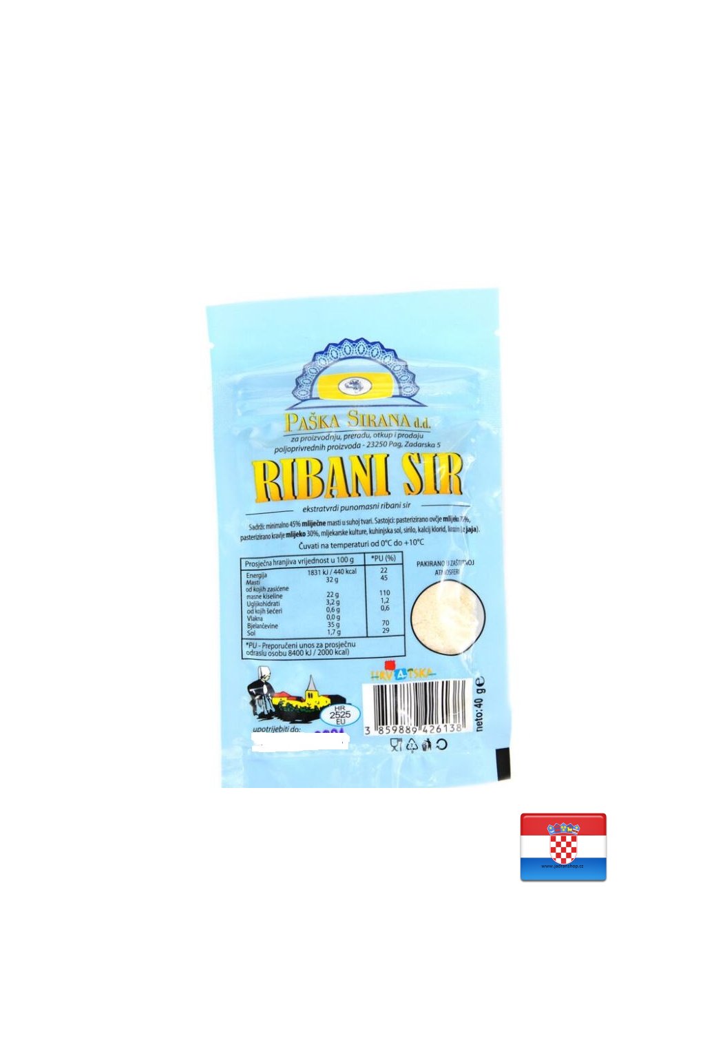Výrobce: Paška Sirana d.d. pro výrobu, zpracování, nákup a prodej zemědělských produktů, 23250 Pag, Zadarska 5