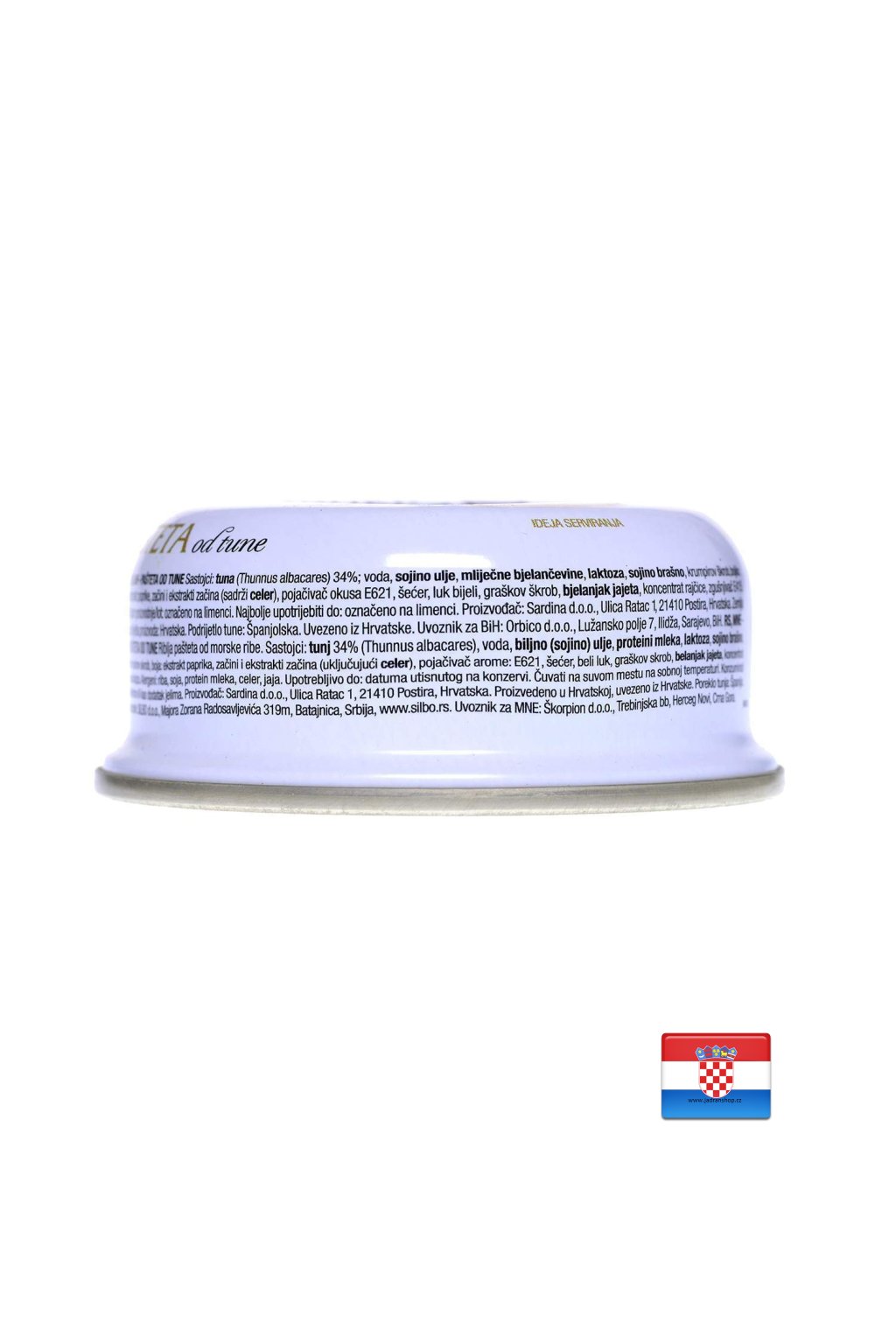 Vynikající pomazánka z tuňáka z Jadranu a ostrova Brač kde společnost Sardina vyrábí rybí produkty již od roku 1907 jsou známe po celém světě svoji nejen svou chutí ale také kvalitním zpracováním produktů což také dokazují certifikáty kvality. ISOO 9001: 2000, HACCP a IFS.