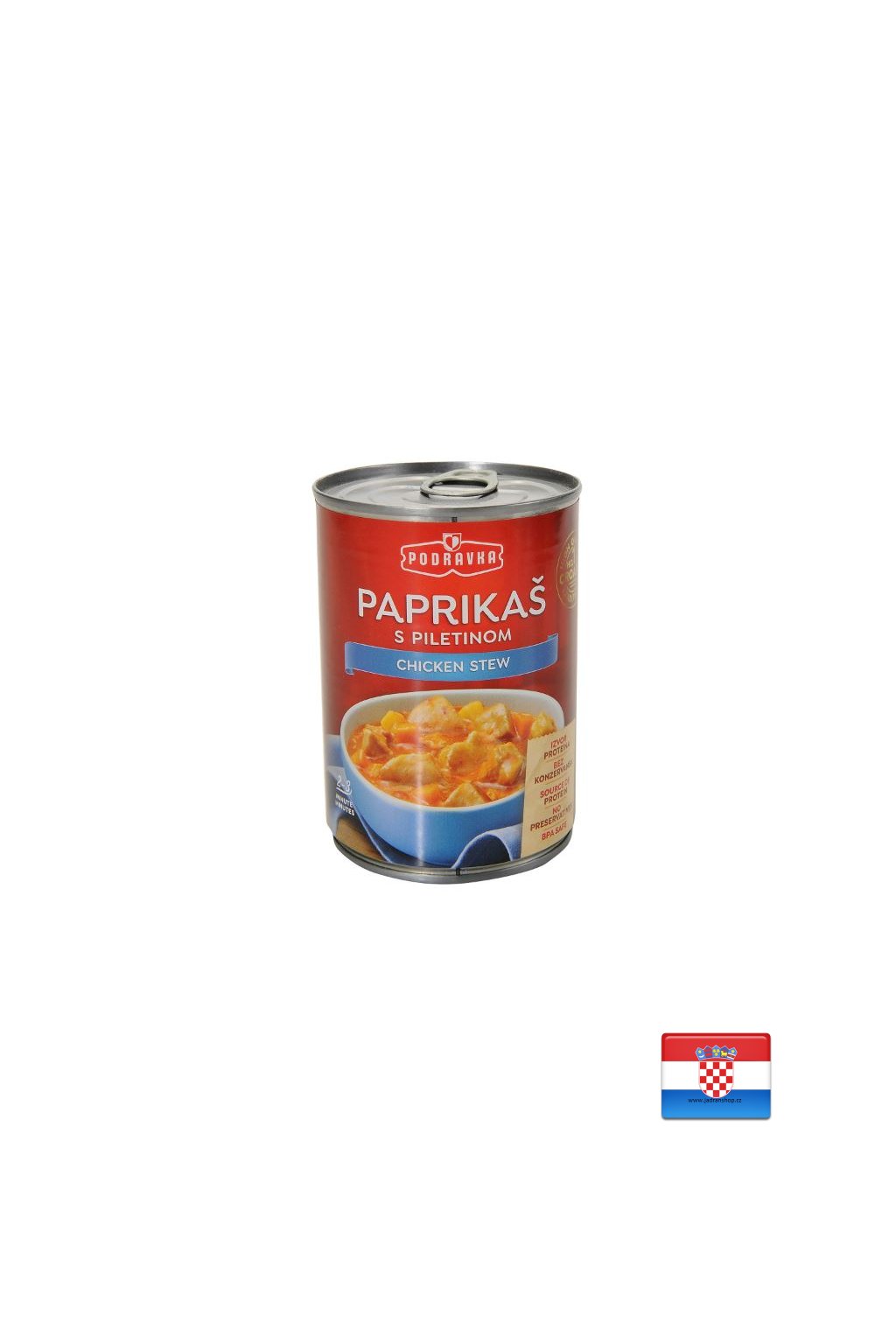 Složení: voda, kuřecí maso 25%, mrkev 6%, brambory 6%, paprika 2,5%, rajčatový koncentrát, slunečnicový olej, rýžové krupice, kukuřičný škrob, jodizovaná sůl,