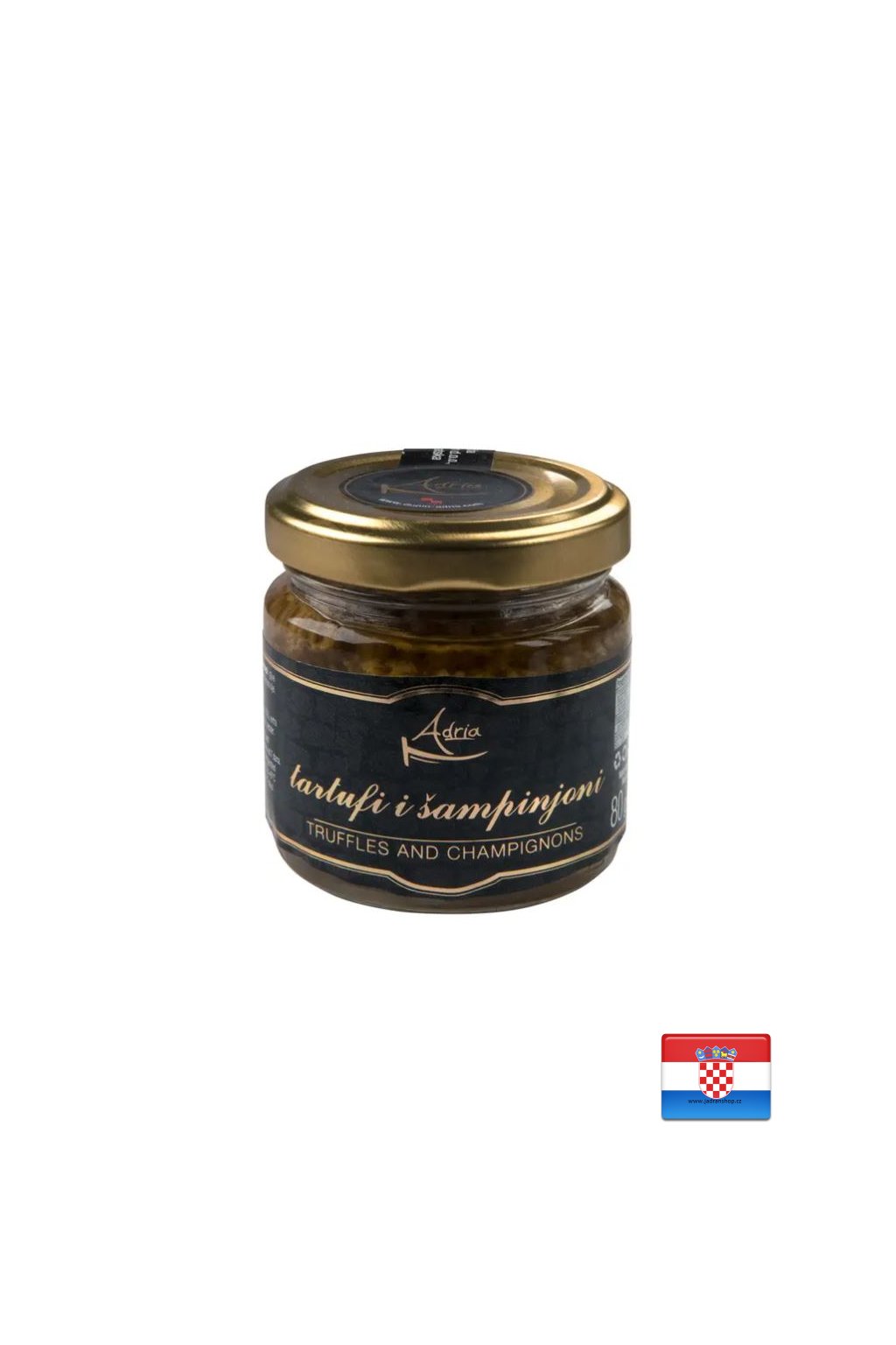 Složení: žampiony (agaricus bisporus) 76 %, extra panenský olivový olej, černý lanýž (tuber aestivum) 6 %, sůl, aroma, pepř.