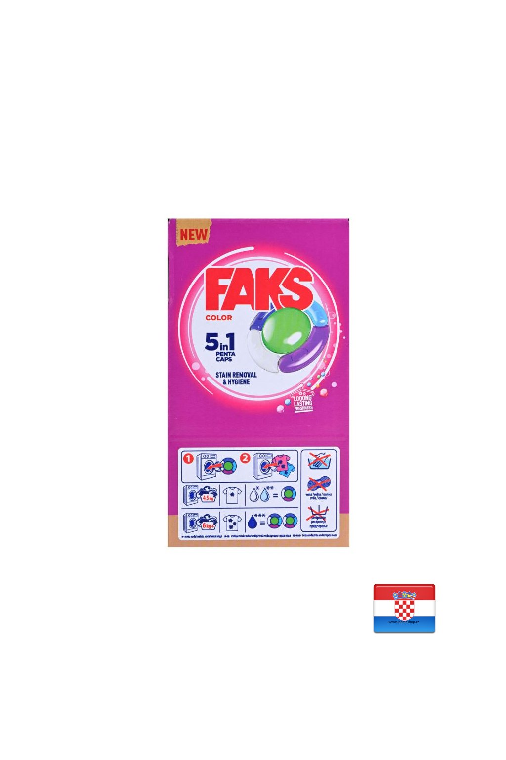 Kapsle Faks Color pronikají hluboko do vláken a účinně odstraňují nečistoty. Zajišťují dokonalou čistotu a voňavou svěžest prádla.