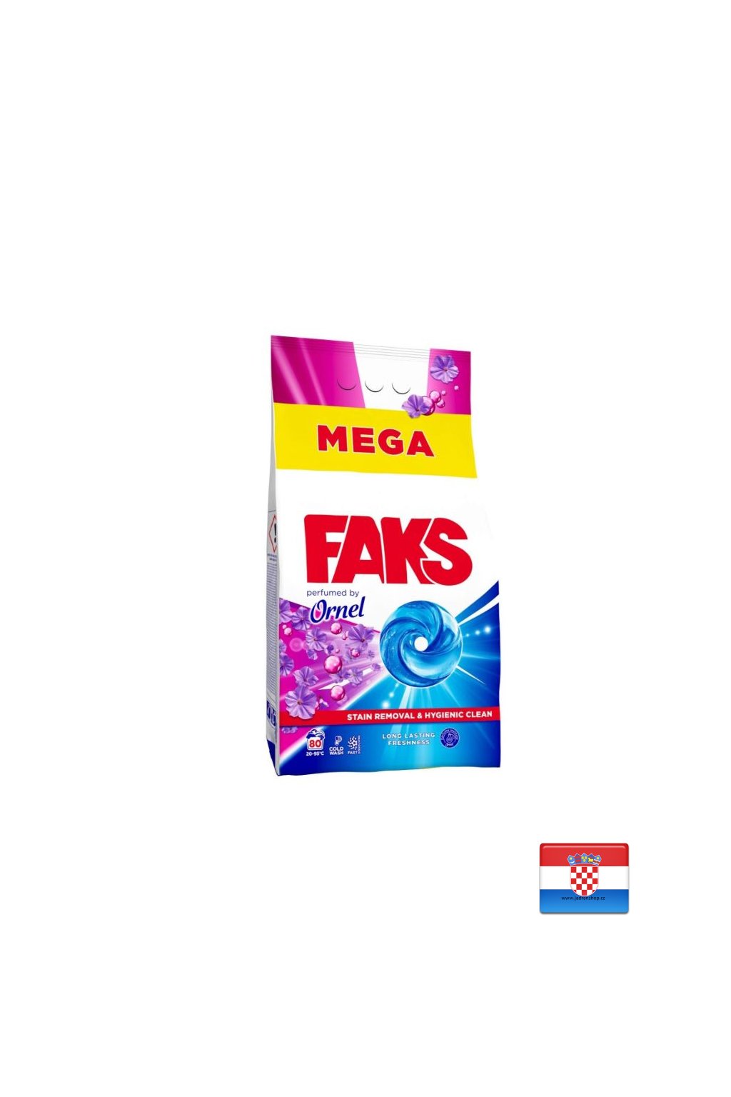 Faks by Ornel přináší dokonalou čistotu s neodolatelnou svěžestí inspirovanou avivážemi Ornel. Díky své vlastnosti rychlého rozpouštění (Fast Dissolving) se prášek rovnoměrně uvolňuje ve vodě a okamžitě začíná působit na skvrny hluboko ve vláknech. Efekt Stain Removal & Hygiene umožňuje účinné odstranění odolných skvrn a hygienickou čistotu i při nižších teplotách - a zároveň šetří energii a chrání oblečení. Po vyprání zůstává oblečení nejen dokonale čisté, ale také obalené dlouhotrvající svěžestí a příjemnou vůní.