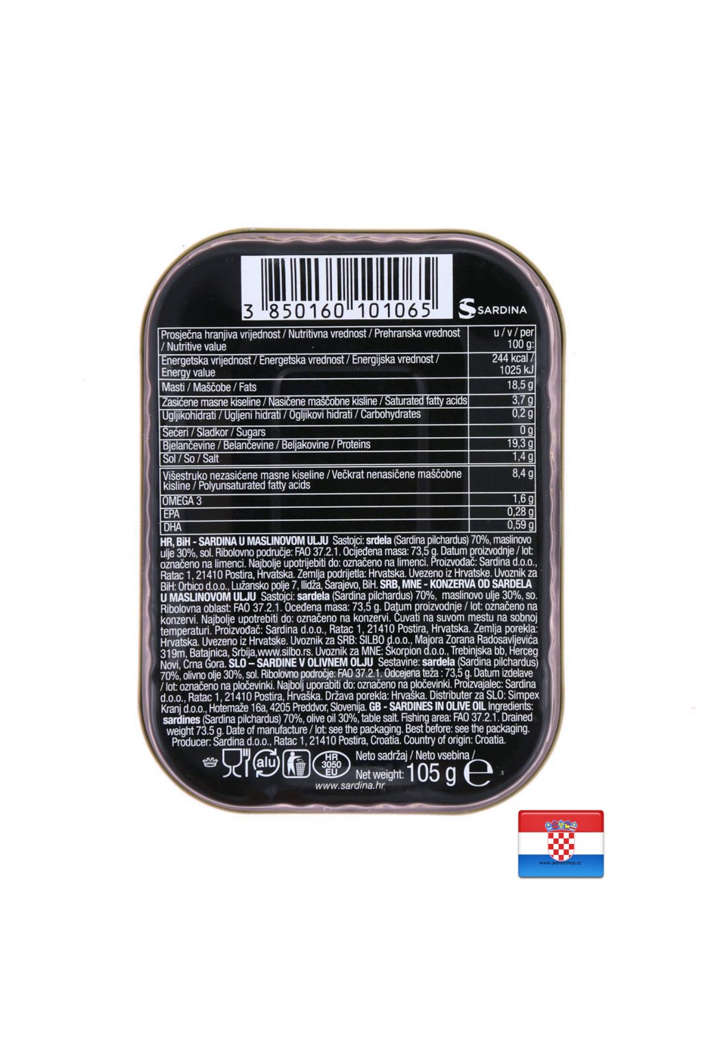Sardinky v olivovém oleji z Jadranu a ostrova Brač kde společnost Sardina vyrábí rybí produkty již od roku 1907 jsou známe po celém světě svoji nejen svou chutí ale také kvalitním zpracováním produktů což také dokazují certifikáty kvality. ISOO 9001: 2000, HACCP a IFS.