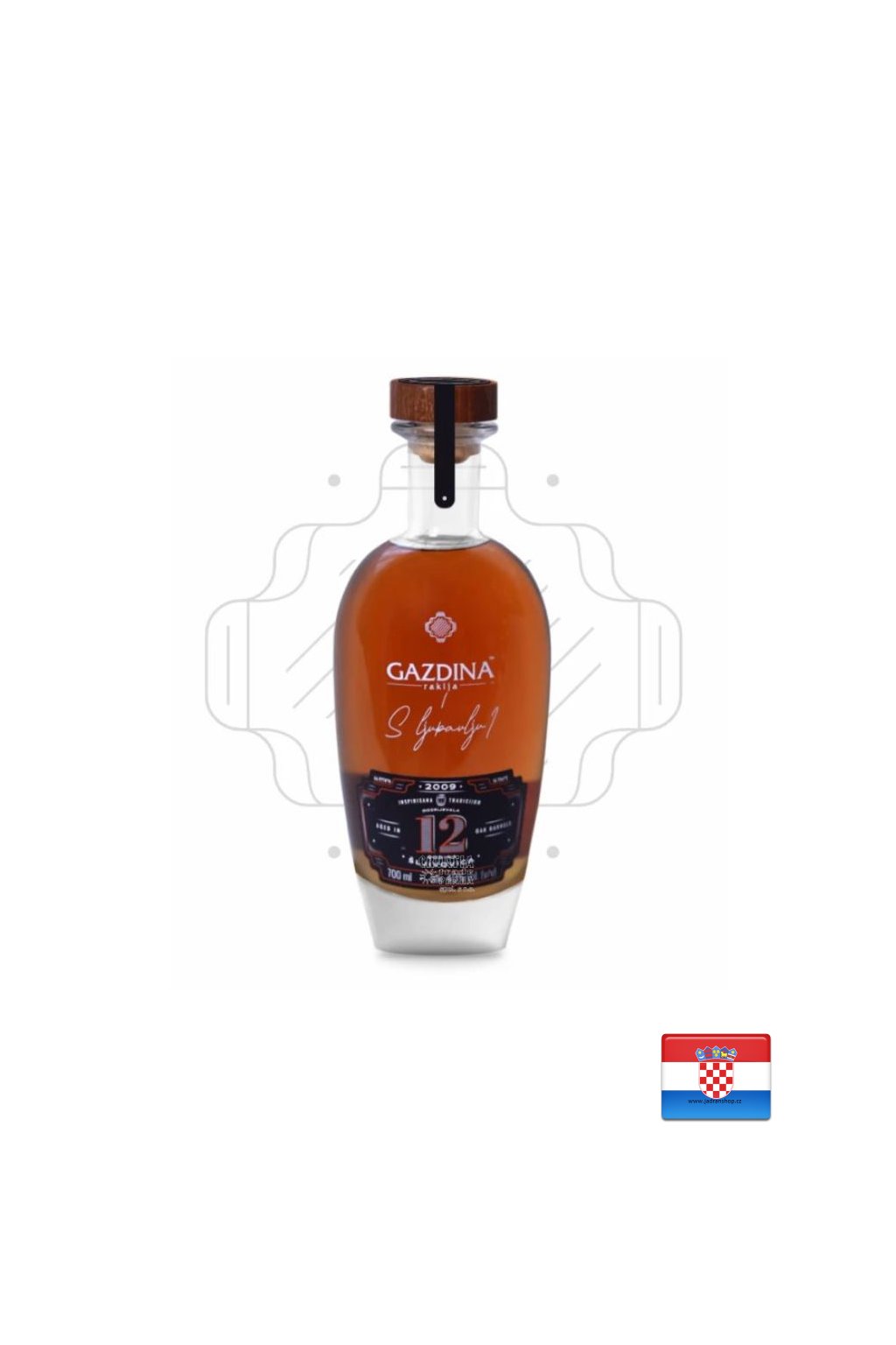 Tajemství naší exkluzivity je právě v tom, že se kvalita předává z ruky do ruky a z generace na generaci. Protože je Gazdina Rakija 12-ti letá vyráběna z pečlivě vybraných, šťavnatých a úplně zralých plodů švestek odrůdy Požegače (v dnešní době celkem vzácné odrůdy), nebylo těžké rozhodnout, že bude exkluzivita tohoto nápoje dostupná i v luxusním balení. Vychutnejte si speciální limitovanou edici slivovice Gazdina, zrající 12 let v dubových sudech, ve kterých předcházel proces zrání vína. Dřevo umožňuje pálence postupně zrát, obohacuje nápoj o aromatické vlastnosti, které mu dodávají charakteristickou vůni, chuť a specifickou barvu.