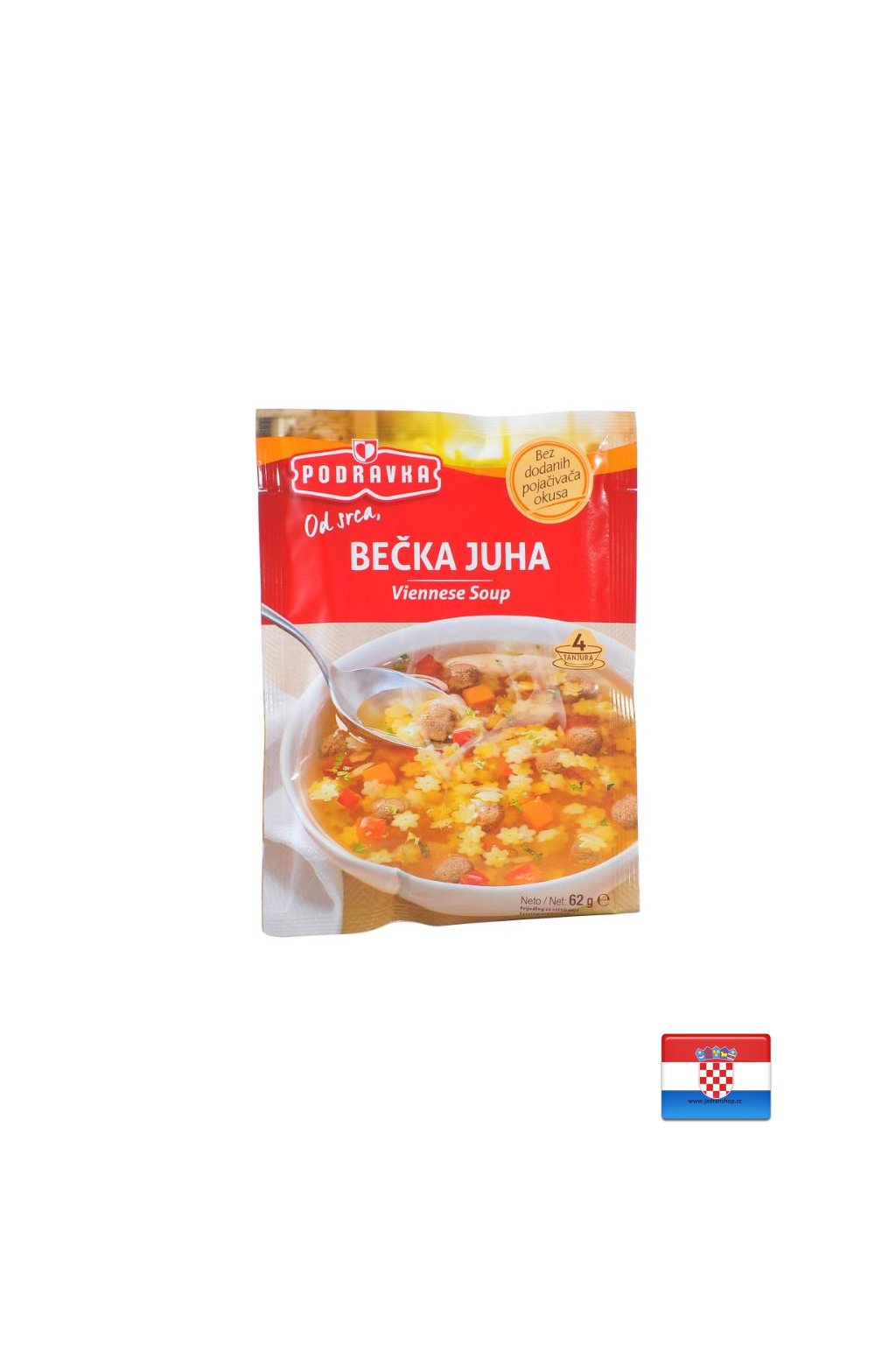 Další informace: Bez přidaných zvýrazňovačů chuti. Dehydratovaný produkt. Na 4 talíře polévky