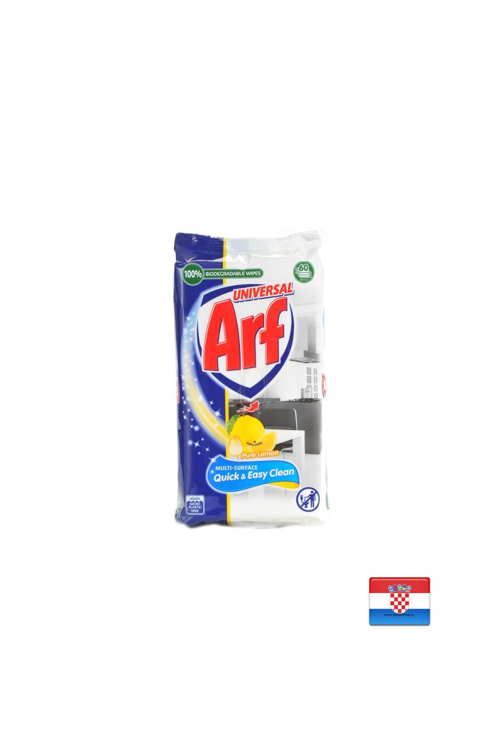 Vlhčené ubrousky Arf Universal důkladně čistí prach a nečistoty z různých omyvatelných povrchů. Vyčištěné povrchy velmi rychle schnou a lesknou se a po úklidu má místnost příjemnou a svěží vůni citronu. Když chceme rychle a snadno uklidit svůj domov, nejlepším řešením jsou univerzální vlhčené ubrousky Arf!